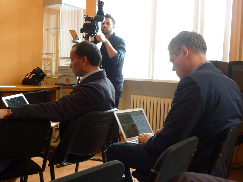 Front left to right Prof. Sergey Svertilov, Prof. Anatoli F Lyudin, second row, Prof. George F Smoot, Prof. Tsvi Piran facing Prof. Pawan Kumar, in the back Prof. Evgeny Derishev facing Prof. Maurice van Putten